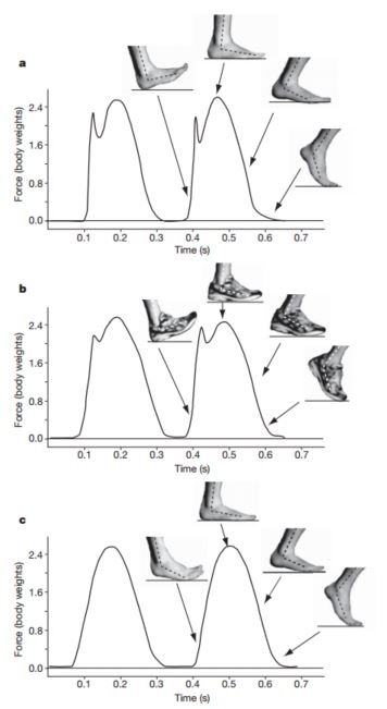 rear foot-striker and a barefoot forefoot-striker at 3.5 m/s running speed. Courtesy Liebermann et.al (2010).