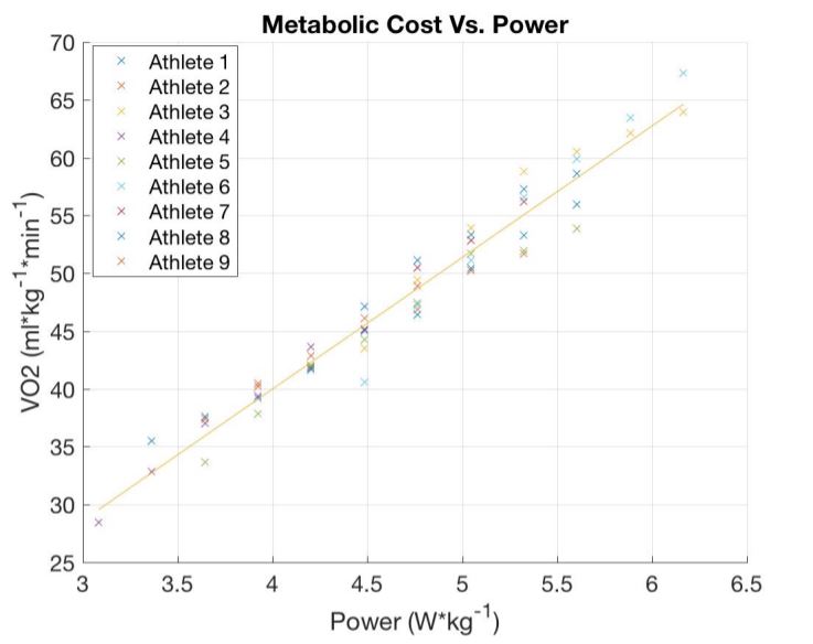 The linear relationship of VO2 to power is encouraging in as far as it only tells us that model algorithm involving speed works.