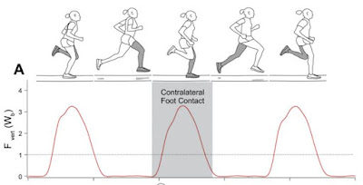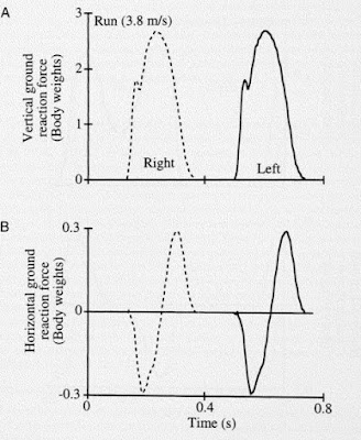 Figure A2 : An illustration of the horizontal ground reaction force-time curve (lower plot). Courtesy Farley & Ferris.